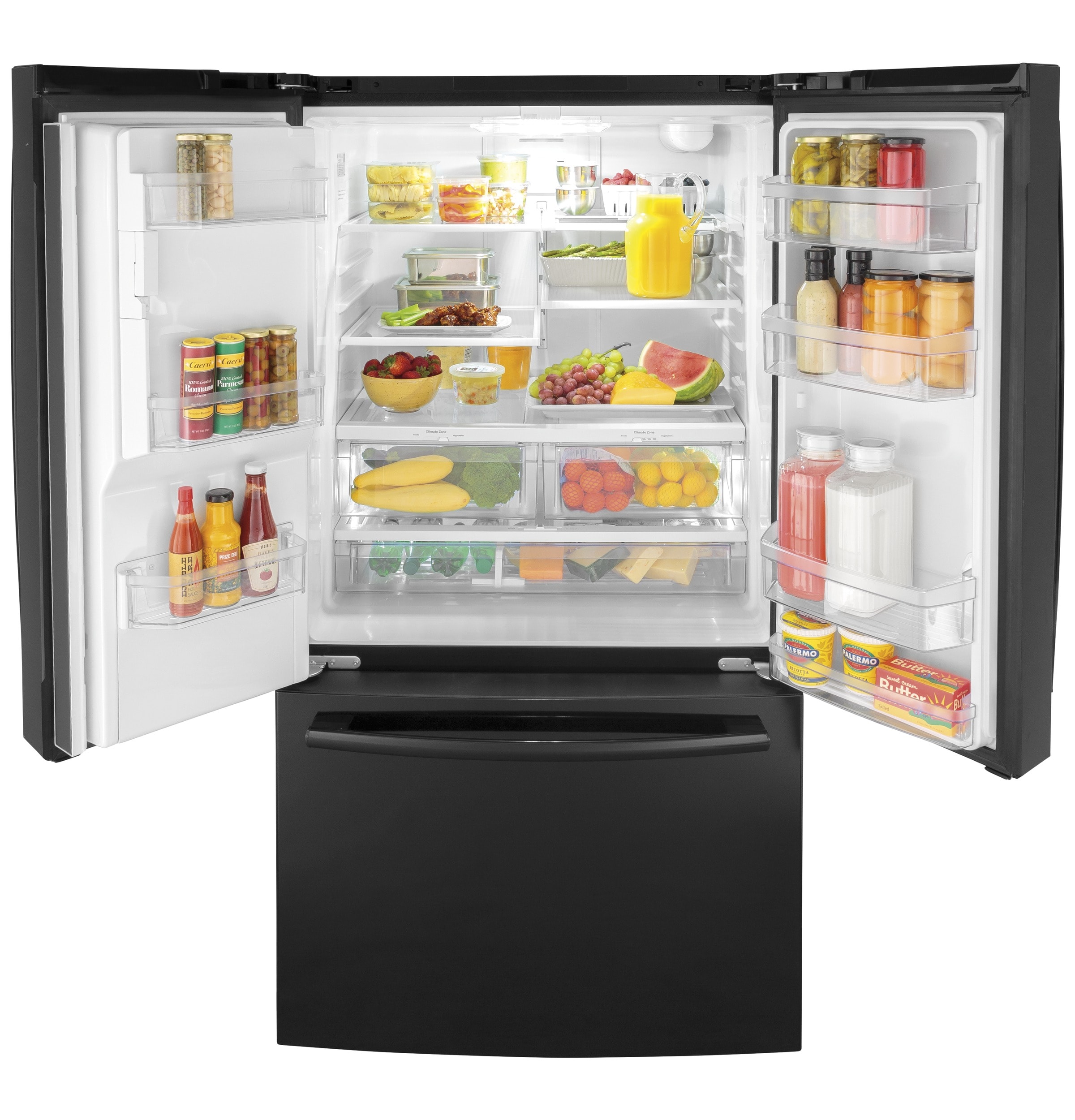 25.6 cu ft capacity – easily store large or bulk food items with three full-width shelves