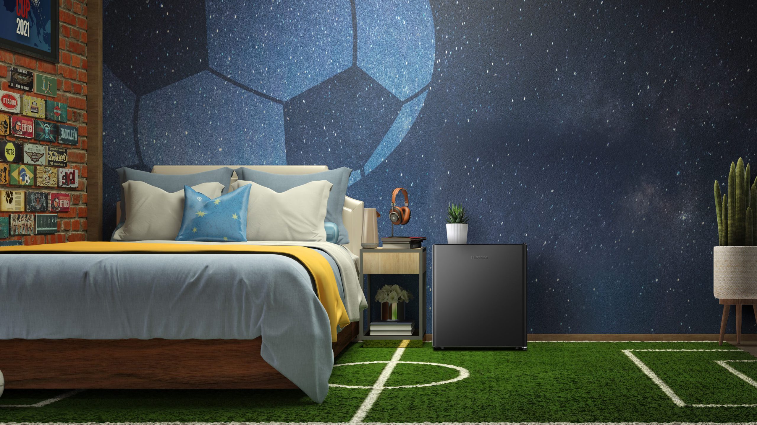 This new 1.6 cu. ft. black mini fridge HRC016ABE is perfect for college dorms, break rooms, or just extra storage for your home and office space. New sleek door design with round edge adds elegance to your space. However, the sleek and stylish design does not compromise its functionality. 2 L beverage storage allows you to store beverages and frees up space in the rest of the fridge. The adjustable legs and reversible door design allow for placement of this mini refrigerator virtually anywhere you need it. Thanks to the 43dB ultra quiet operation, you still get a peaceful sleep though it’s right next to you bed or desk…!