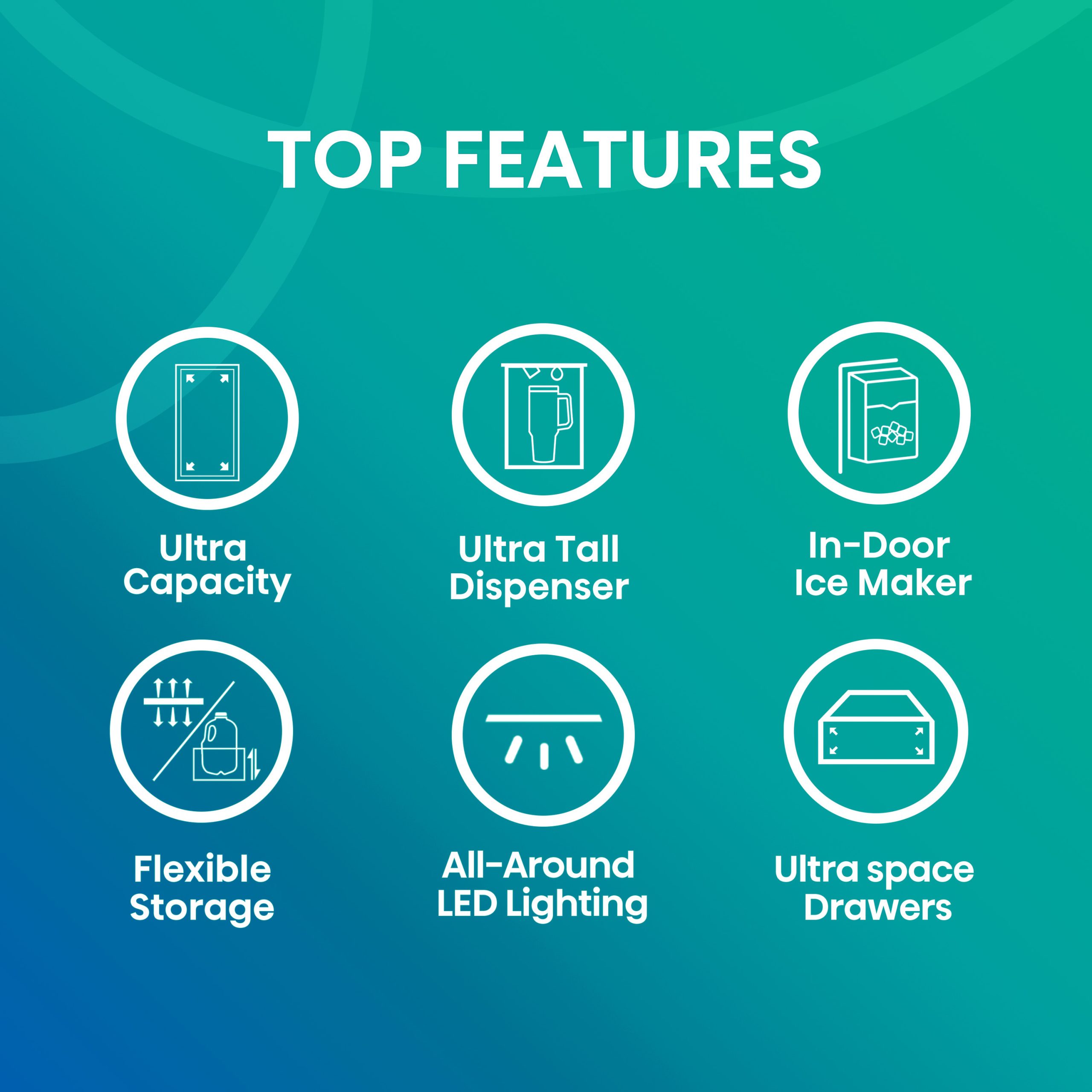 UltraSpace Drawers – Maximize storage for produce and frozen items with extra-deep, ultra-spacious compartments.