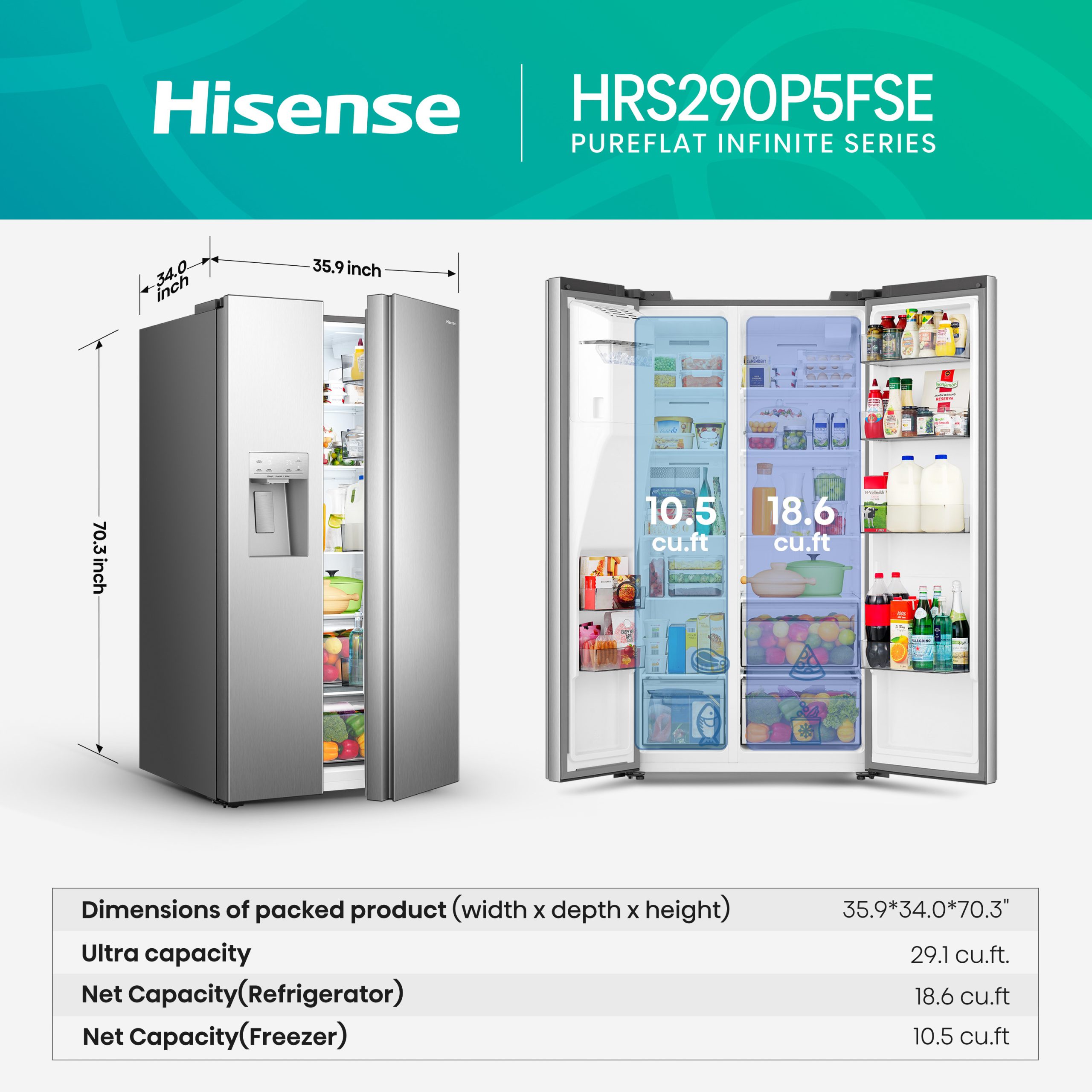 Big Fridge for a Big Family – Meet the Hisense UltraCapacity Side by Side refrigerator—the ultimate storage powerhouse. With the No. 1 capacity in the US and UltraSpace drawers Maximizing storage for produce and frozen items with extra-deep, ultra-spacious compartments. You’ll never run out of room (Yes, even those impulse Costco hauls). The In-Door Ice Maker frees up freezer space, while the UltraTall ice and water dispenser easily fits up to 10″ tumblers. Adjustable shelves and a gallon door bins maximize flexibility for all your storage needs. Bigger really is better.
