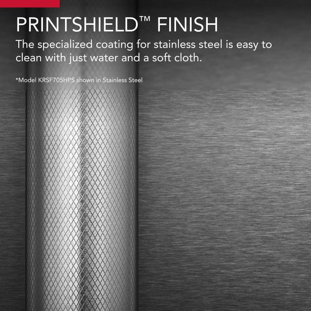 Storage that’s designed to care for fresh foods. This Kitchen Aid® side-by-side Refrigerator features the Preserva® Food Care System, which has two independent cooling systems to help keep food fresh while the FreshFlow™ Air Filter minimizes odors and the Produce Preserver helps delay over-ripening.* Plus, the PrintShield™ Finish resists fingerprints and smudges on the stainless exterior. (*Based on commonly purchased produce.)