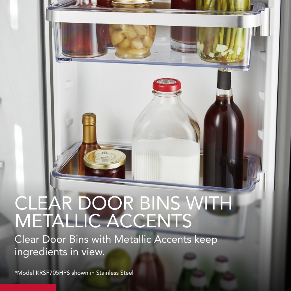 Clear Door Bins with Metallic Accents keep ingredients in view