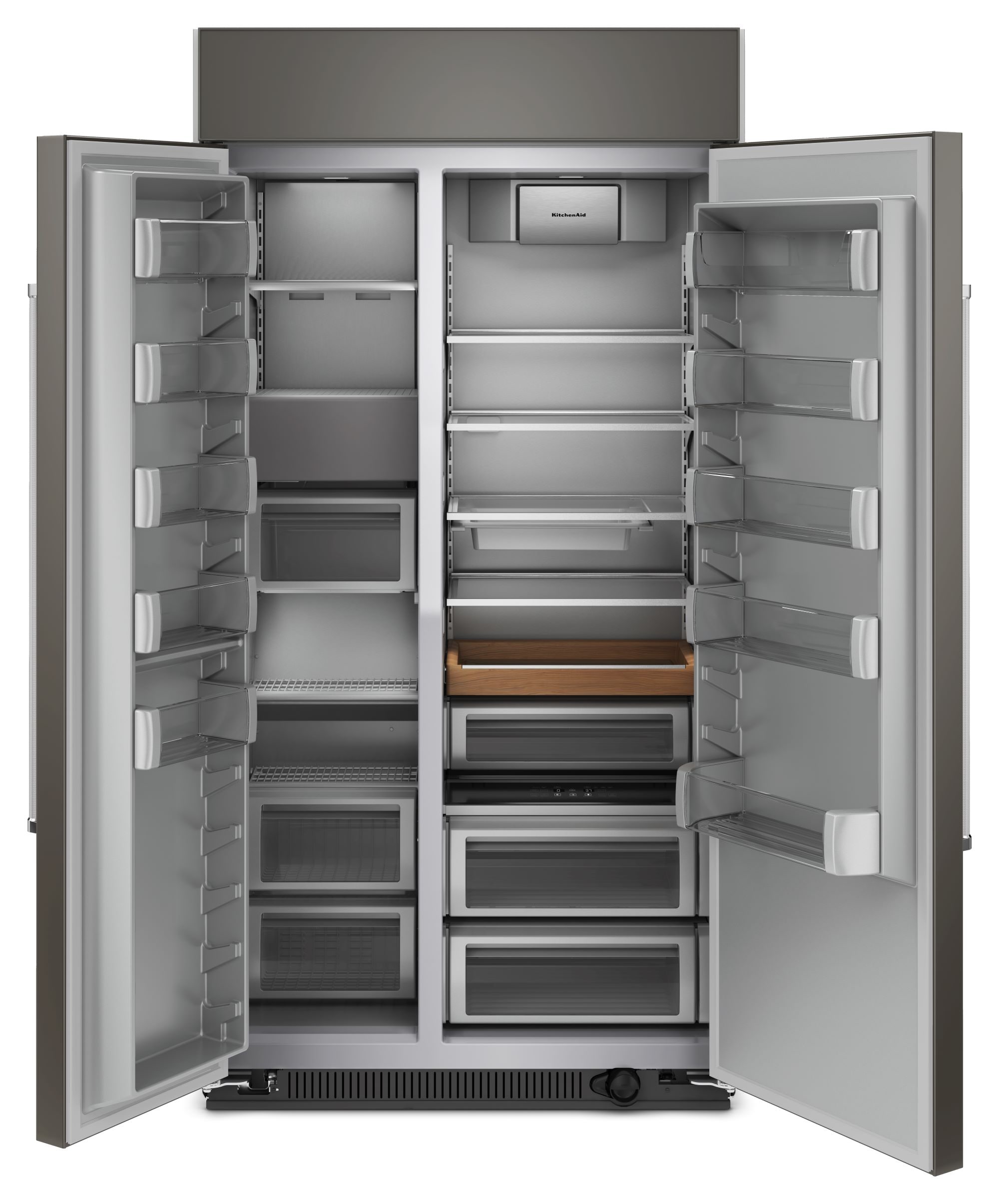 This premium 42” built-in refrigerator features PrintShield™ Finish to resist fingerprints outside, and has innovative storage inside. Like the Under-Shelf Prep Zone with included bakeware, and the moisture- and stain-resistant Wood-Look Pull Out Tray that keeps ingredients beautifully organized. Plus, optimal temperatures for ingredients are maintained with the ExtendFresh™ Plus Temperature Management System.