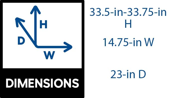 Unit is front-breathing and 33.5 inches high for installation under counter and can be used in both built-in or freestanding applications