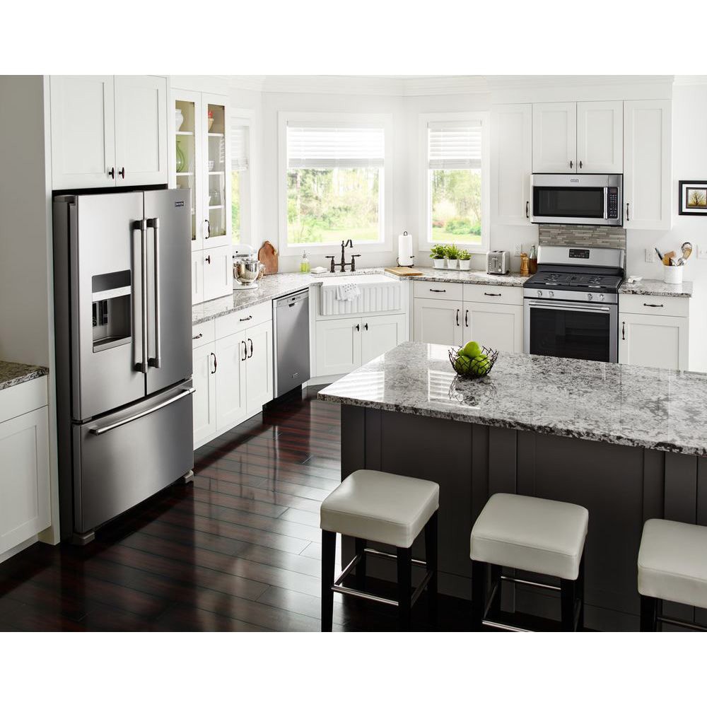 This Maytag® french door refrigerator is made with heavy-duty components and features that deliver the right kind of cold exactly where it’s needed. It’s available in Fingerprint Resistant Stainless Steel to keep this fridge looking as good on the outside as it works on the inside. With the touch of a button, the PowerCold® feature quickly chills down the refrigerator. The temperature-controlled Wide-N-Fresh™ deli drawer provides the perfect place to keep deli items so they stay fresh longer. And when it comes to durability, this french door refrigerator has stainless steel handles to give you something hardy to grab on to, while the 10-year limited parts warranty on the compressor means you can count on it hold the cold for years.