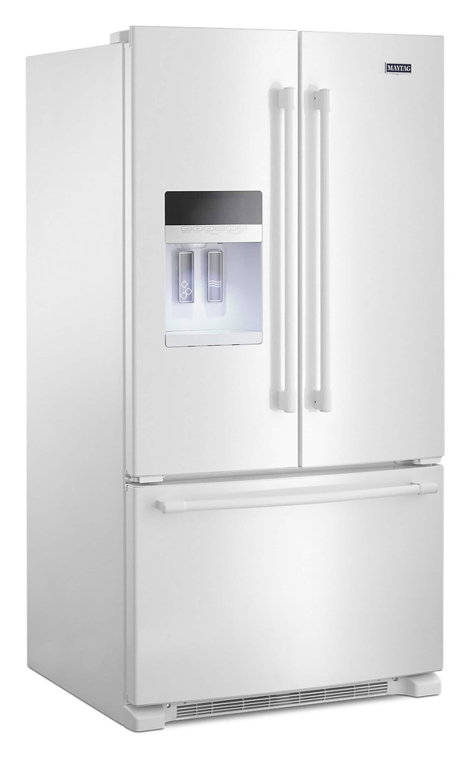 This Maytag® french door refrigerator is made with heavy-duty components and features that deliver the right kind of cold exactly where it’s needed. It’s available in Fingerprint Resistant Stainless Steel to keep this fridge looking as good on the outside as it works on the inside. With the touch of a button, the PowerCold® feature quickly chills down the refrigerator. The temperature-controlled Wide-N-Fresh™ deli drawer provides the perfect place to keep deli items so they stay fresh longer. And when it comes to durability, this french door refrigerator has stainless steel handles to give you something hardy to grab on to, while the 10-year limited parts warranty on the compressor means you can count on it hold the cold for years.