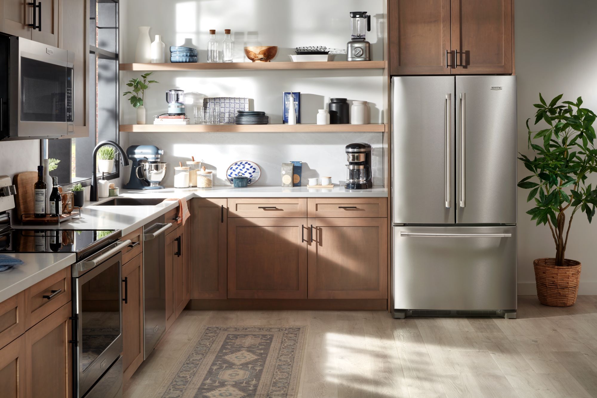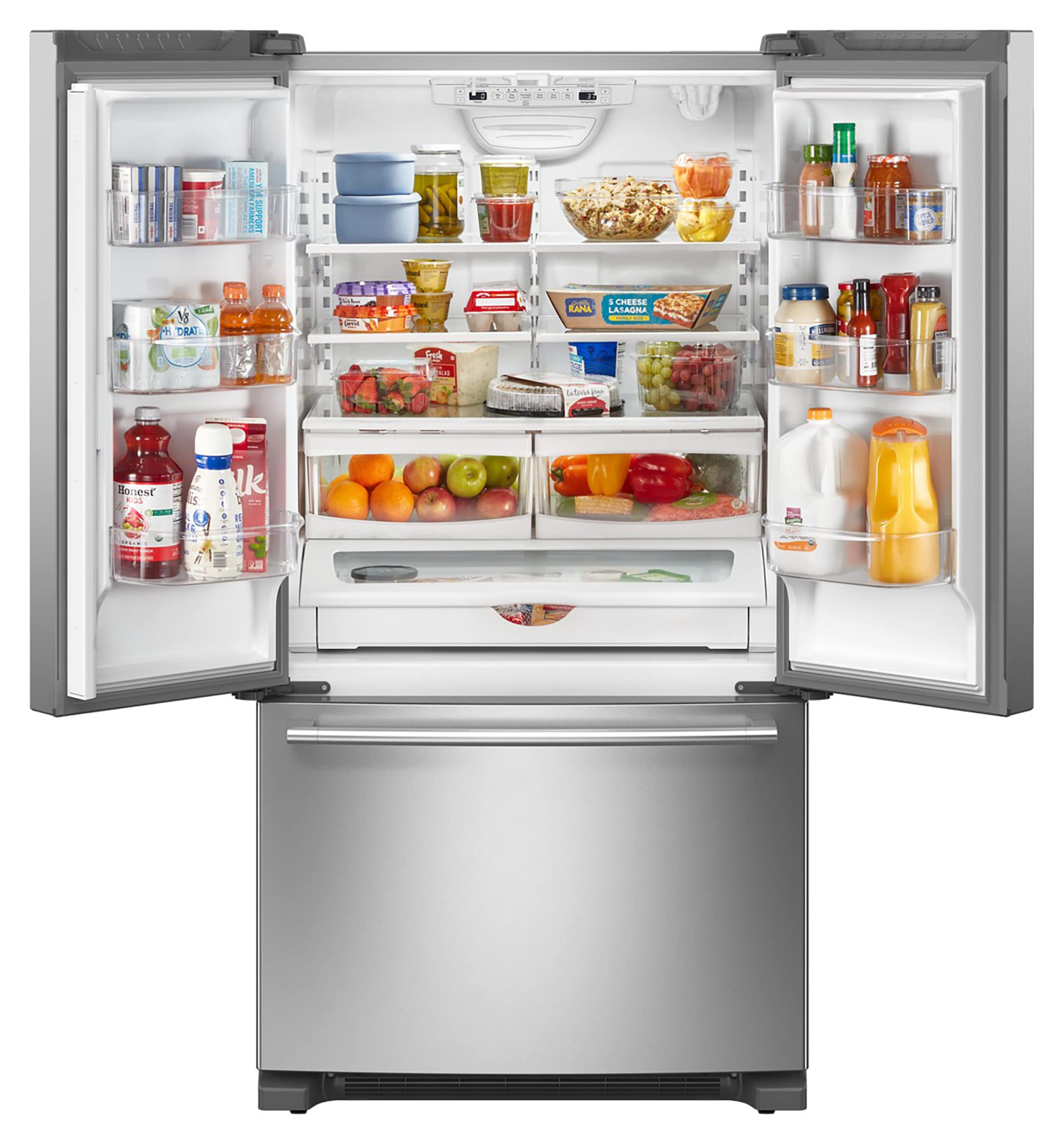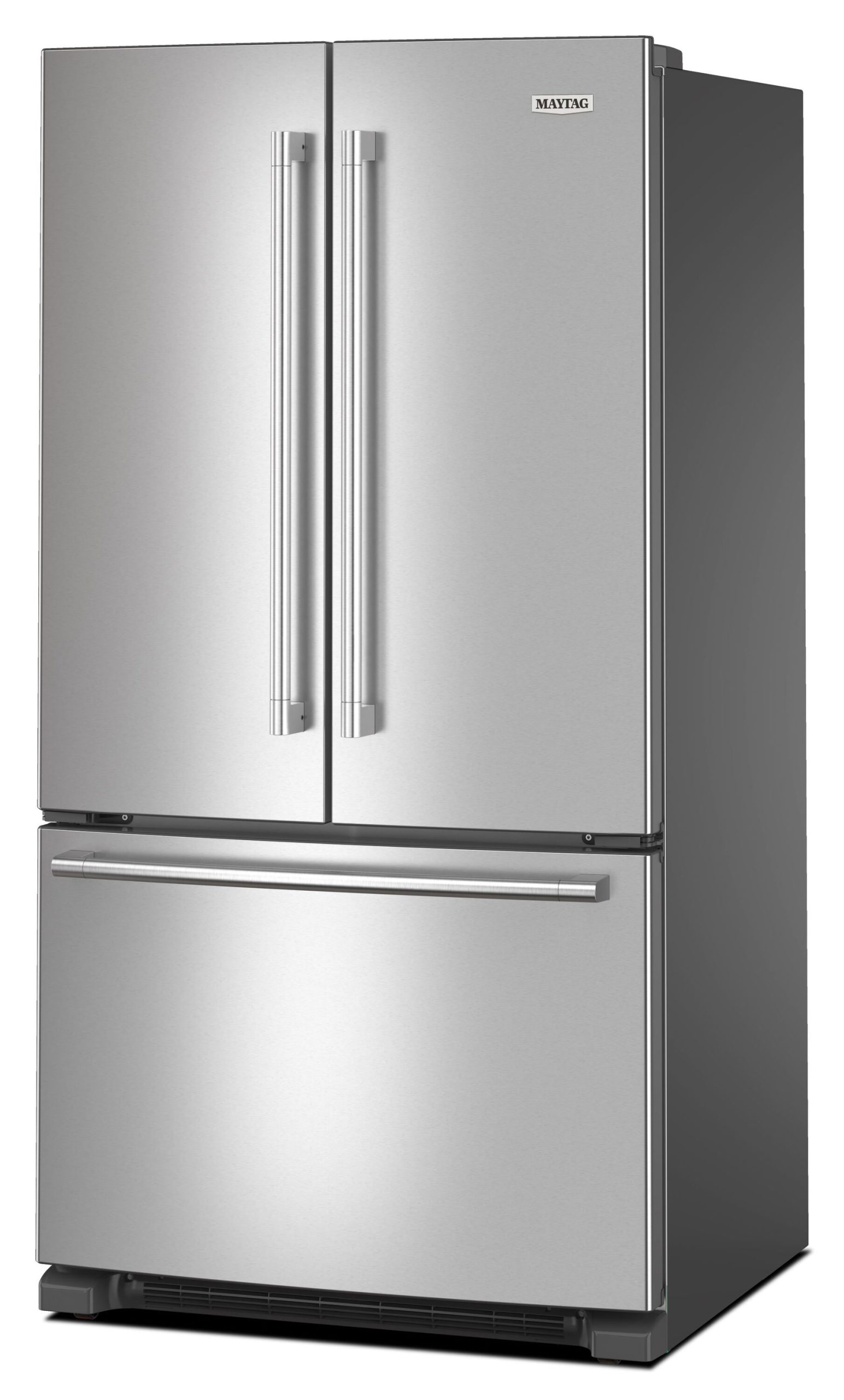 Get a performance powerhouse in the kitchen with the Maytag® French Door Bottom Mount Refrigerator. This 36 inch refrigerator has a fingerprint resistant stainless steel finish on the outside, and the Max Cool Setting on the inside, which turns the temp to the coldest level for 24 hours with the touch of a button.