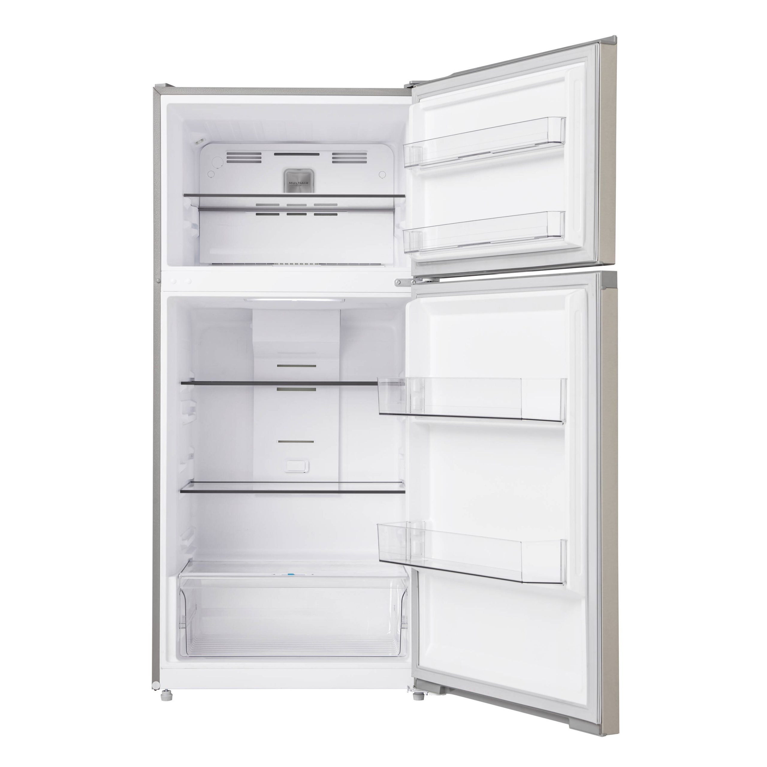 Upgrade your kitchen with the Midea 14.2-cu ft Counter-Depth Top-Freezer Refrigerator, which offers both a wide range of convenient features and energy-efficient performance. The internal LED lighting ensures that you can always find what you’re looking for, while the electronic control panel makes temperature adjustments a breeze. Humidity-controlled crisper drawers keep your produce fresh, and the reversible door allows for flexible installation. The top-freezer design puts frozen foods at eye level for easy access. Bring home this refrigerator today to optimize your food storage capabilities and keep your kitchen running smoothly.