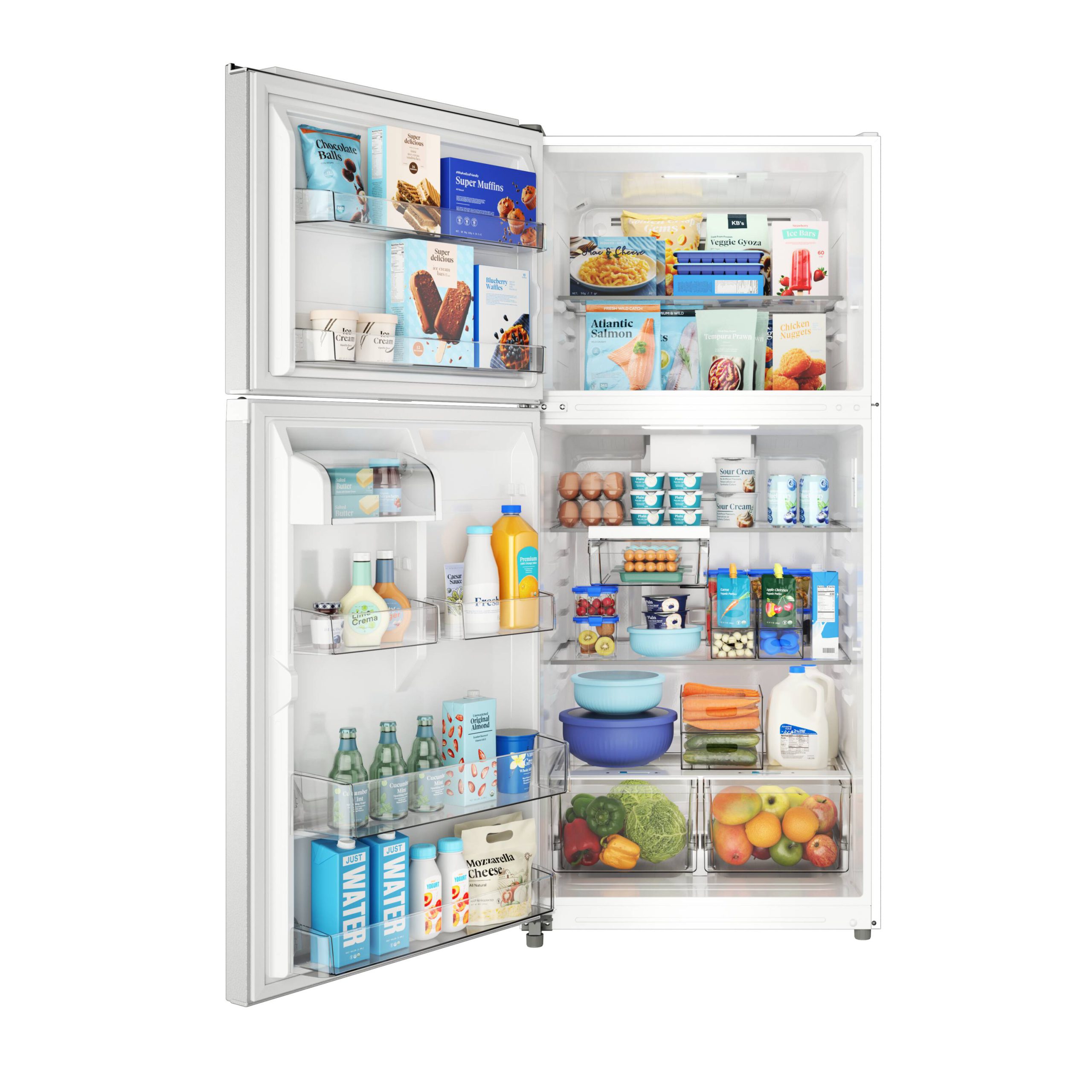 Upgrade your kitchen with the Midea 20.5-cu ft Top-Freezer Refrigerator (White), which offers both a wide range of convenient features and energy-efficient performance. The internal LED lighting ensures that you can always find what you’re looking for, while the electronic control panel makes temperature adjustments a breeze. Humidity-controlled crisper drawers keep your produce fresh, and the reversible door allows for flexible installation. The top-freezer design puts frozen foods at eye level for easy access. Bring home this refrigerator today to optimize your food storage capabilities and keep your kitchen running smoothly.