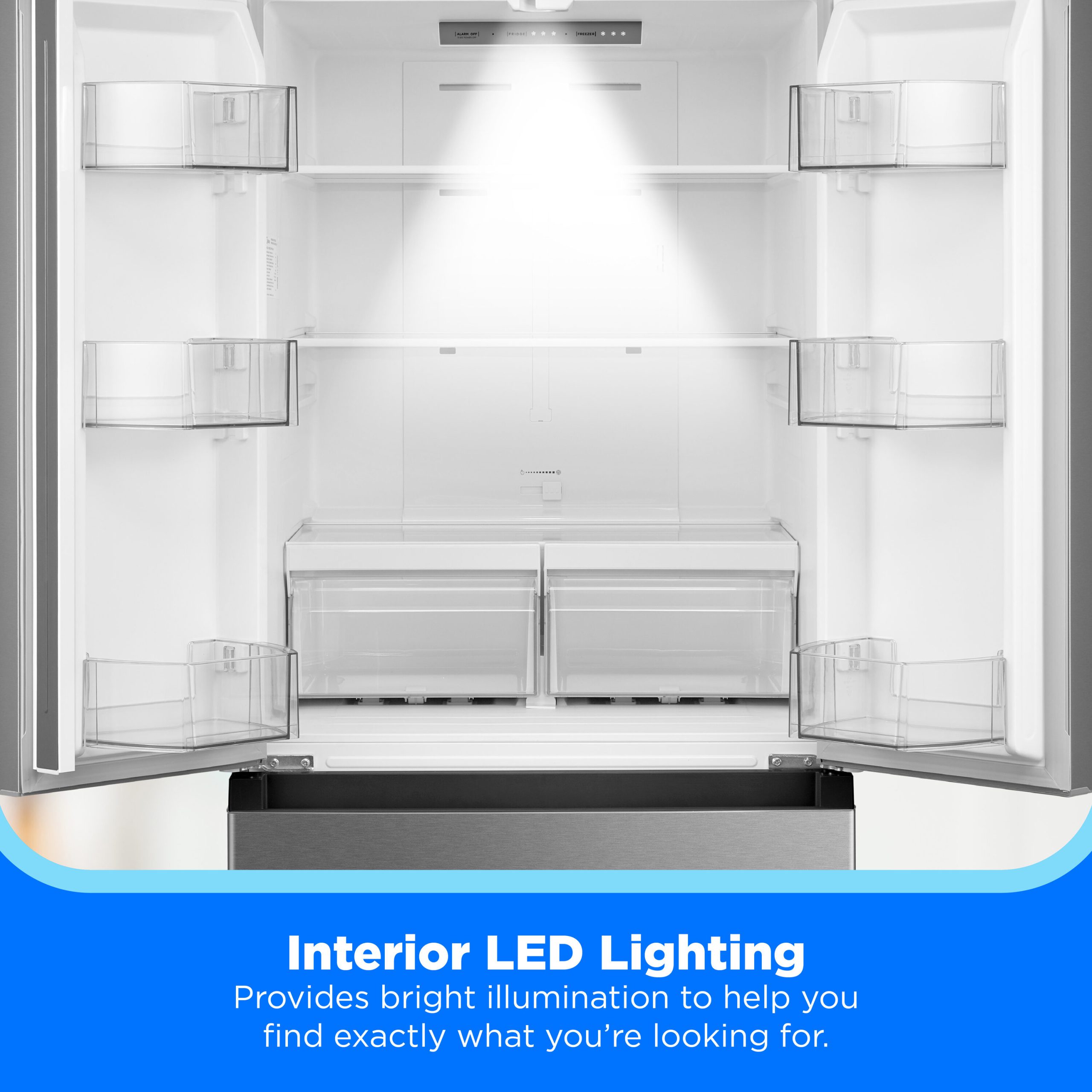 With the Midea 18 cu. ft. French Door Refrigerator, you get a sleek and premium design on a compact footprint. Measuring only 30 inches wide, this refrigerator is the perfect size for upgrading from a top-freezer unit or renovating your small space kitchen. It features a variety of interior drawers and bins to keep food organized and accessible. For added functionality, it comes ice-maker ready so you can easily install a compatible accessory kit in the future. All of this is covered by a 2-year parts and labor warranty, double the industry standard, to provide you with even greater peace of mind.