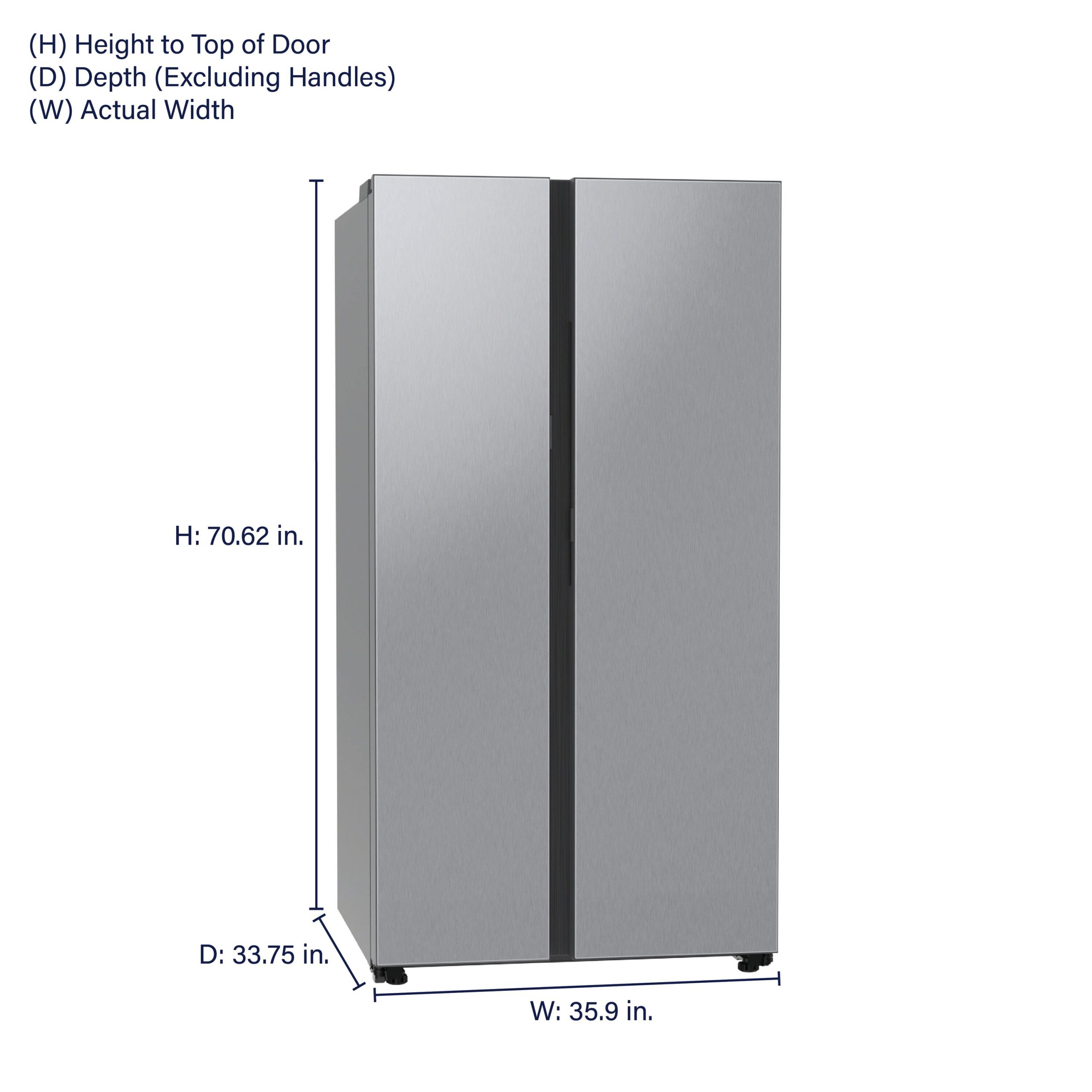 Add style to your kitchen with the Bespoke side-by-side white glass or stainless steel refrigerator; The Beverage Center includes a dispenser and AutoFill Water Pitcher with the option to infuse with a flavor; The Dual Auto Ice Maker lets you choose from cubed ice or Ice Bites™ that chill your drink faster(compared to cubed ice); The Auto Open Door makes it even easier to open the door(The door automatically opens about 25 mm); with a light touch over the sensor