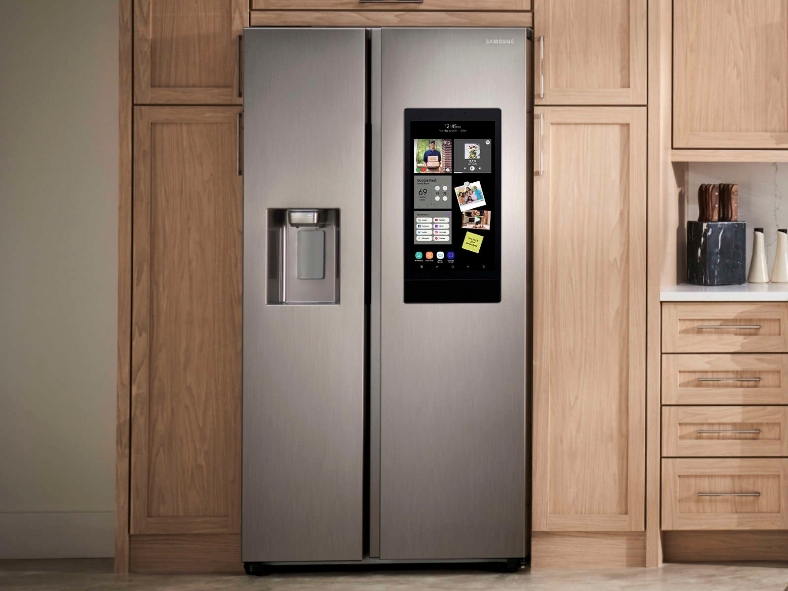 Samsung believes Connected Living starts with people and their busy lives. The kitchen is the heart of home and the FRIDGE is the heart of the kitchen. Samsung’s Family Hub refrigerator helps you connect to what’s most important: your family and home, whenever and wherever. Family Hub lets you see inside your refrigerator, manage your family’s calendars, stream music, see who’s at the front door and much more, all right from your fridge.