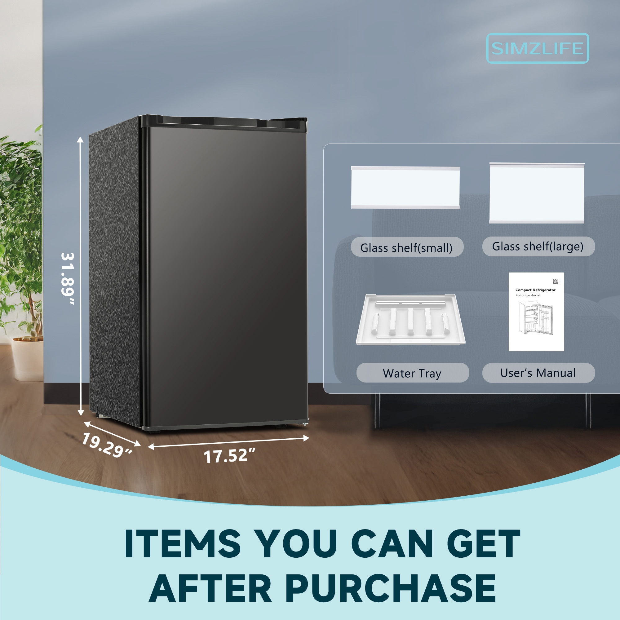 Compact Refrigerator size: 17.3 “D x 18.5 “W x 32.4 “H