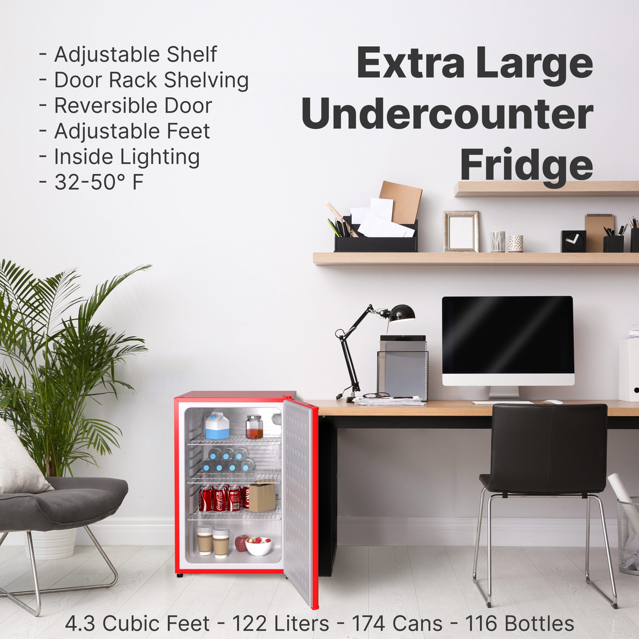 Capacity: 4.3 cu ft.; 122Liters; 174 Cans; 116 Bottles