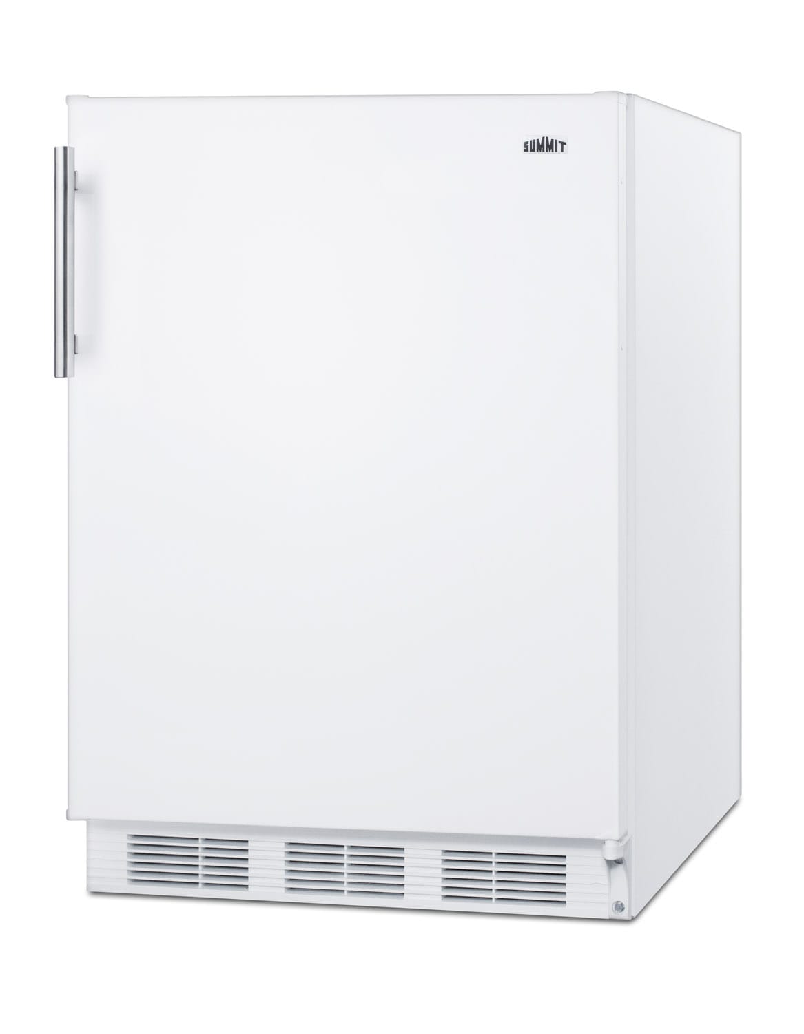 SUMMIT offers a large selection of counter height refrigeration, with a range of choices to best suit any kitchen. The FF61 Series includes European made all-refrigerators designed for recessed installation or freestanding use in residential settings.Sized with a 24” footprint, the FF61W all-refrigerator is designed for freestanding use. It comes in a classic white finish with a user-reversible door swing and attractive stainless steel handle.Inside, the FF61W utilizes automatic defrost operation to ensure minimum user maintenance. The 5.5 cu.ft. interior offers more storage space than most models in this size class. Adjustable glass shelves ensure spill-proof storage, while a large crisper drawer is ideal for keeping produce at its best. A removable wine shelf lets you keep bottles securely in place. The door includes three storage racks for condiments and tall bottles. The seamless interior also features a dial thermostat and automatic light.Designed and constructed in Europe, the FF61W brings reliable cold storage to any home setting.