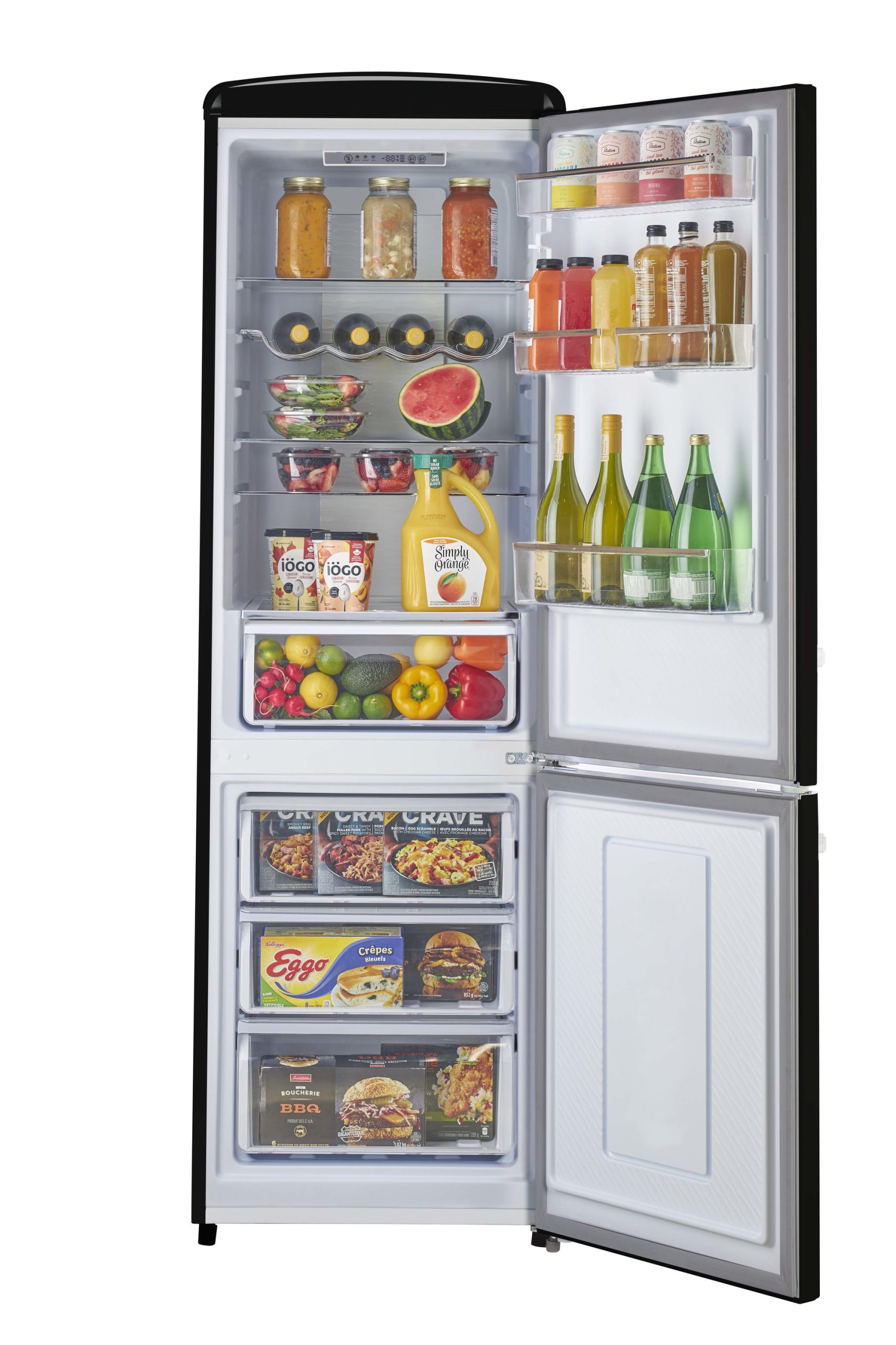 When you’re looking for more storage room, this 12 cu. Ft. Classic retro bottom-mount refrigerator comes with ample space to keep all your fresh and frozen foods, packaged in an eye-catching throwback design. Enjoy the ease of top-mounted fridge space that lets you reach in and find what you need without bending down. Plus the freezer bottom is designed to maximize storage for items you need less often.
