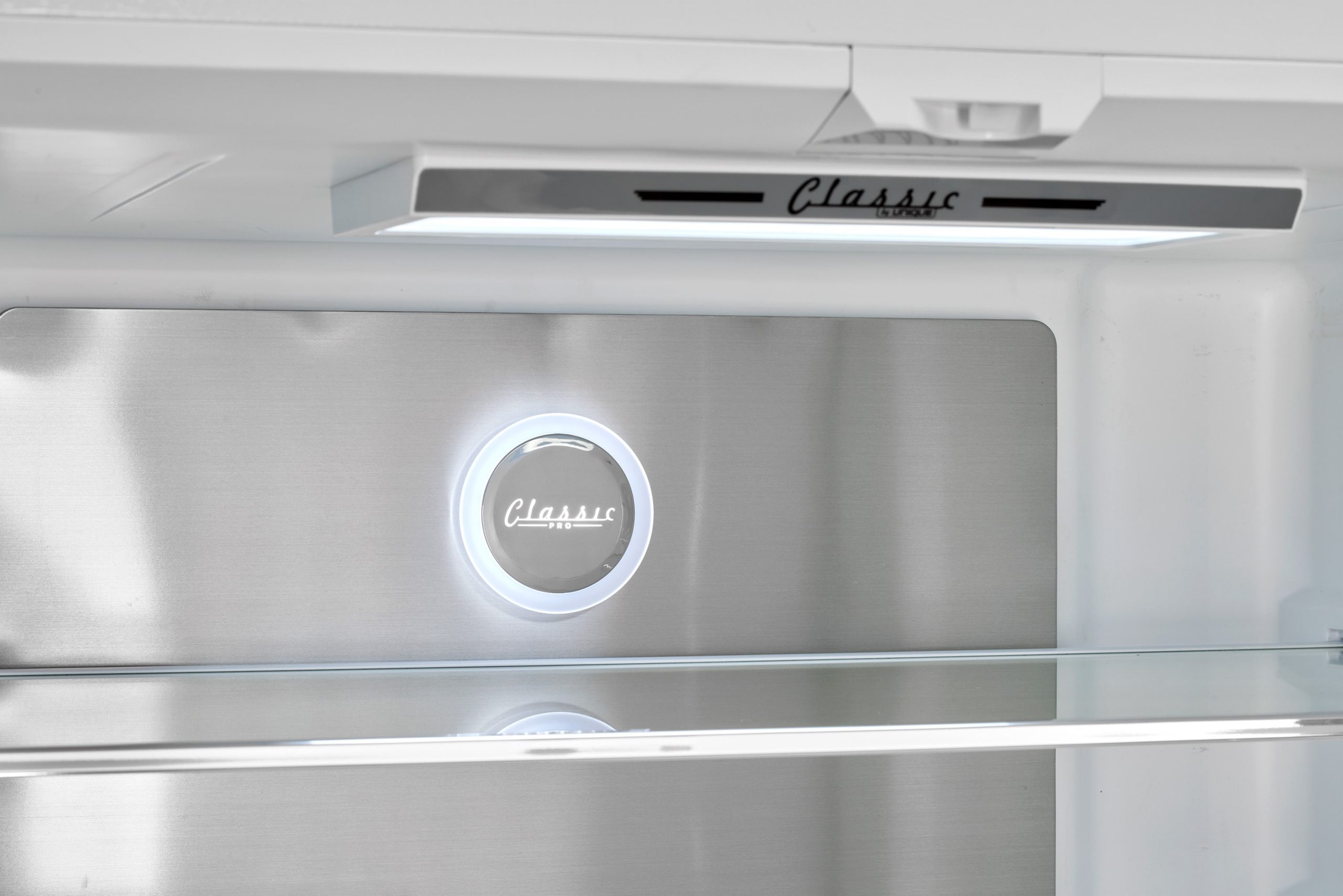 Intuitive digital control panel with LED display with quick freeze setting and door alarm