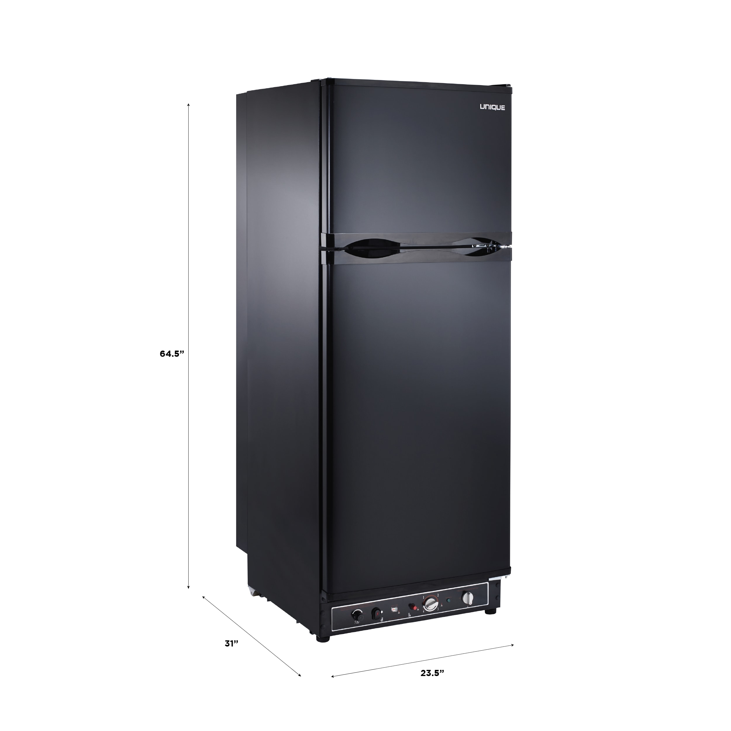 A dependable family favorite, perfectly sized for a week or more at the cottage thanks to its generous fridge and 59.5 l (2.1 cu. Ft.) freezer. It features a spacious, modern interior with glass shelves, a large crisper and battery operated light. CSA certified and dual powered, this fridge can run on propane or 110-Volt, with easy front-mounted controls and battery ignition. Match up with the Unique classic 30G B or 24G B.