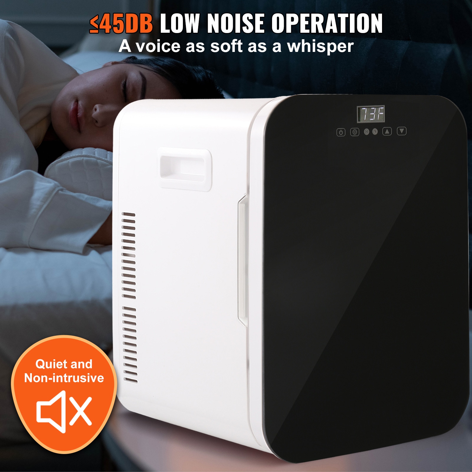 20L Mini Fridge: This multifunctional 20L mini fridge has both cooling and warming modes, and it can go as low as 73.4 degrees Fahrenheit below ambient temperature and as high as 140 degrees Fahrenheit above ambient temperature; The ≤45db low decibel operation will not disturb your work and life; Equipped with home power adapter and 12V DC power cord, this Fridge is perfect for indoor and outdoor use, where you need to store food, drinks, breast milk, medicine, cosmetics, etc;; [Package Content] 1 x Mini Fridge; 1 x US Power Adapter; 1 x DC Car Power Cable; 1 x Towel; 1 x Manual