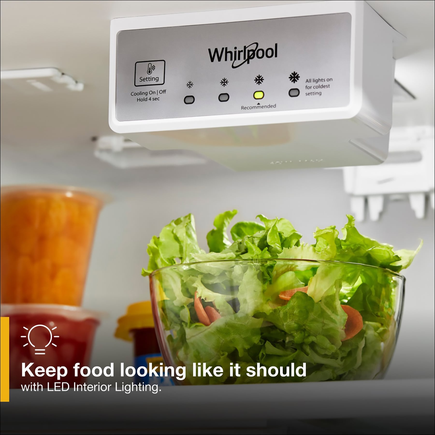 Stay organized and make room for all your groceries with our top freezer refrigerator. The Flexi-Slide™ Bin and Adjustable Glass Shelves give you the flexibility you need to store what you want, where you want it. Keep your food looking good and staying fresh with features like interior led lights and electronic temperature control.