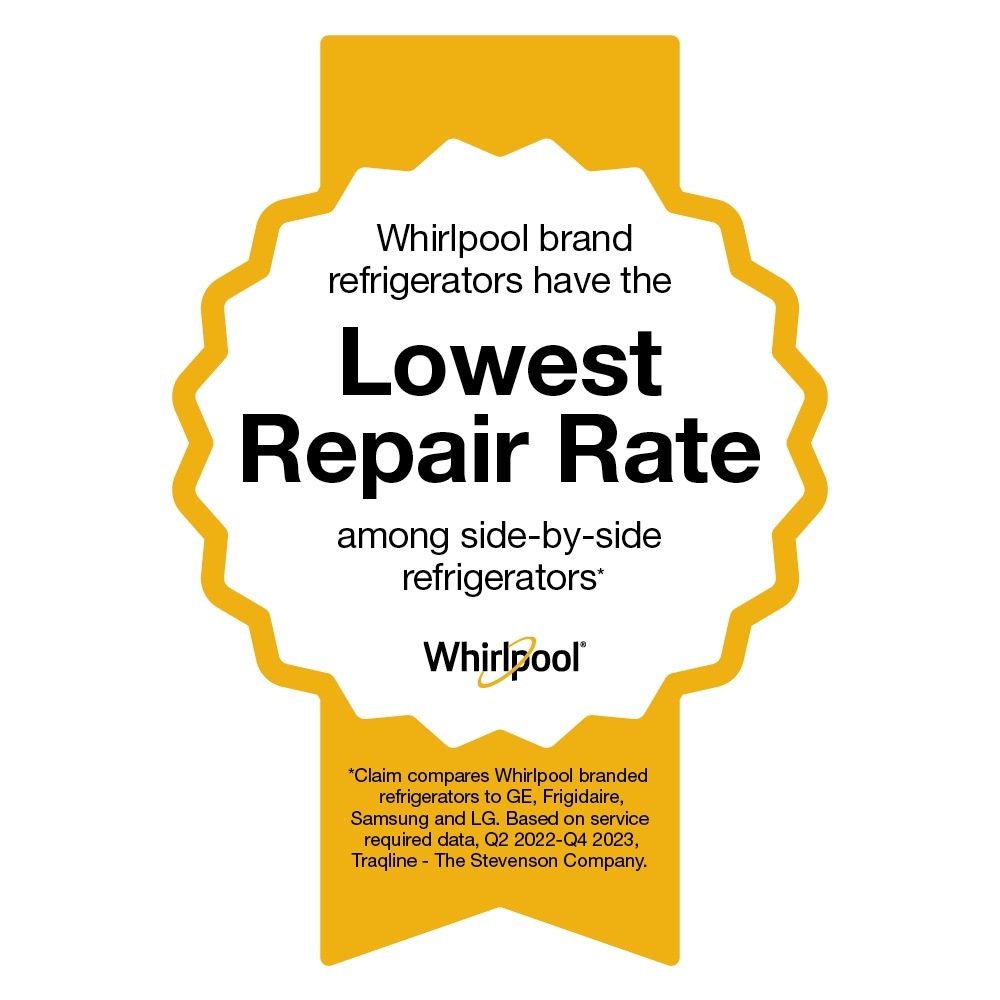Lowest Repair Rate – Whirlpool brand refrigerators have the lowest repair rate among side by side refrigerators