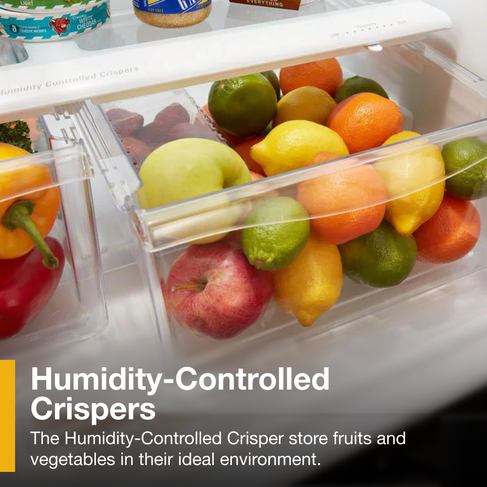 Humidity-Controlled Crispers store fruits and vegetables in their ideal environment
