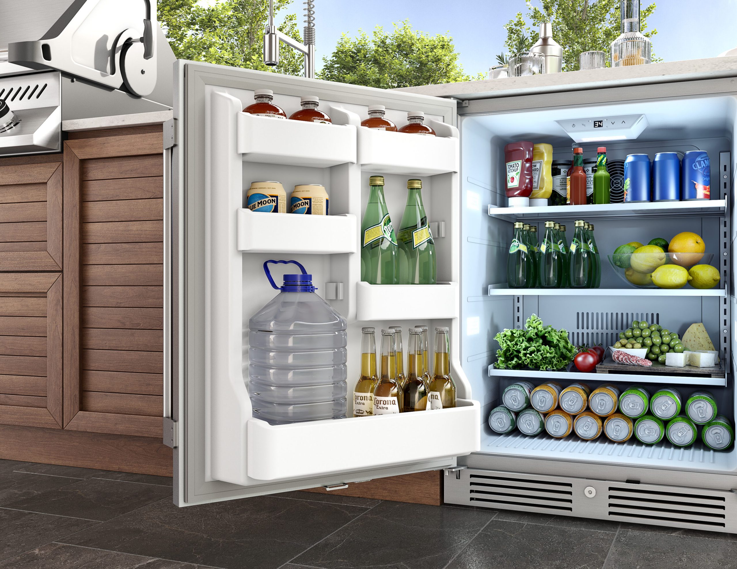 Bring the party al fresco with our new Outdoor Refrigerator. The perfect co-host, this Outdoor and Indoor-certified model is ready to serve up food and drinks to wow your guests from apps right through dessert. Features include party-ready perks like adjustable shelving, customizable door shelving — accommodating two-liter and gallon jugs — all-white interior, sleek stainless steel exterior, white LED lighting and door lock.