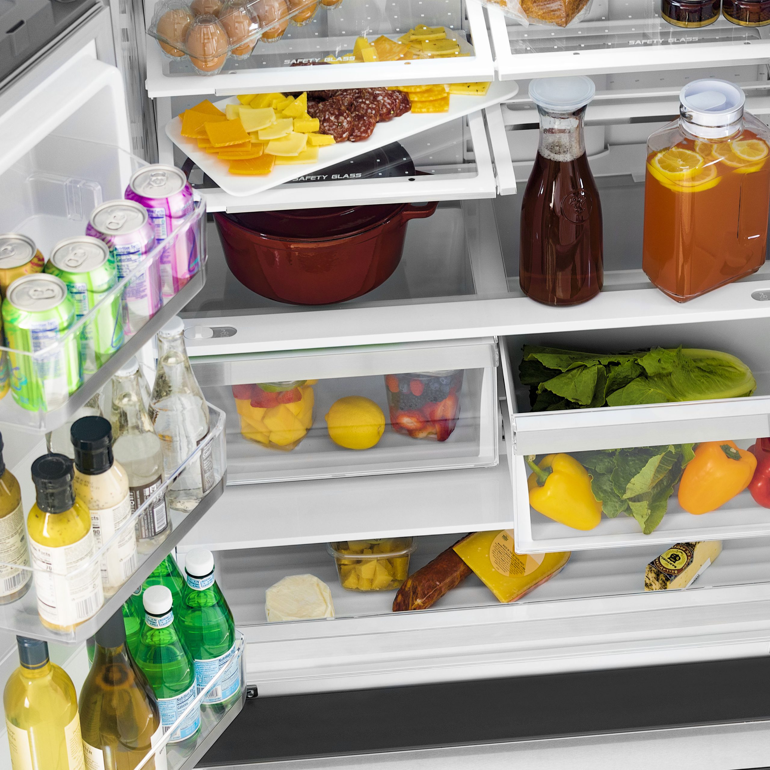 Crisper and Pantry Drawers – Enjoy best-in-class freshness for fruits and vegetables with a pair of half-width humidity-controlled crisper drawers, along with a full-width pantry drawer that provides additional space for deli meats, cheeses, and other food items for optimal storage