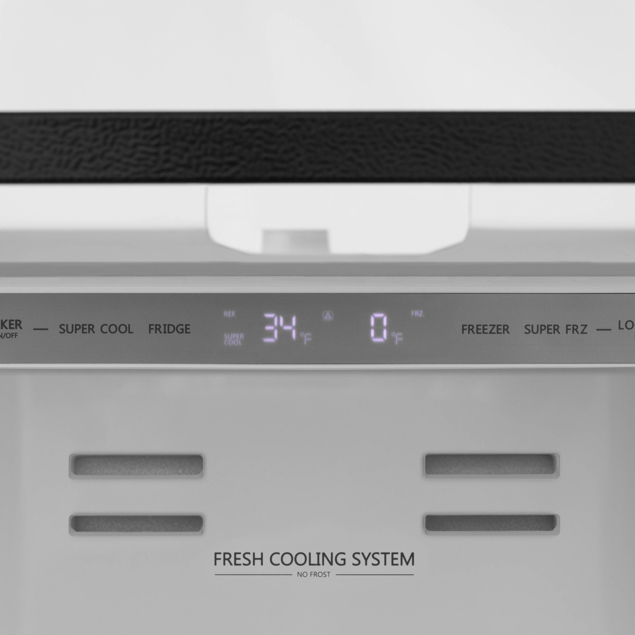 Digital ChillControl – Set temperatures ranging from 34°F to 44°F in the fridge and -7°F to 7°F in the freezer and navigate menu options to change the appliance to vacation, sabbath, or eco modes with an ergonomic LED display panel