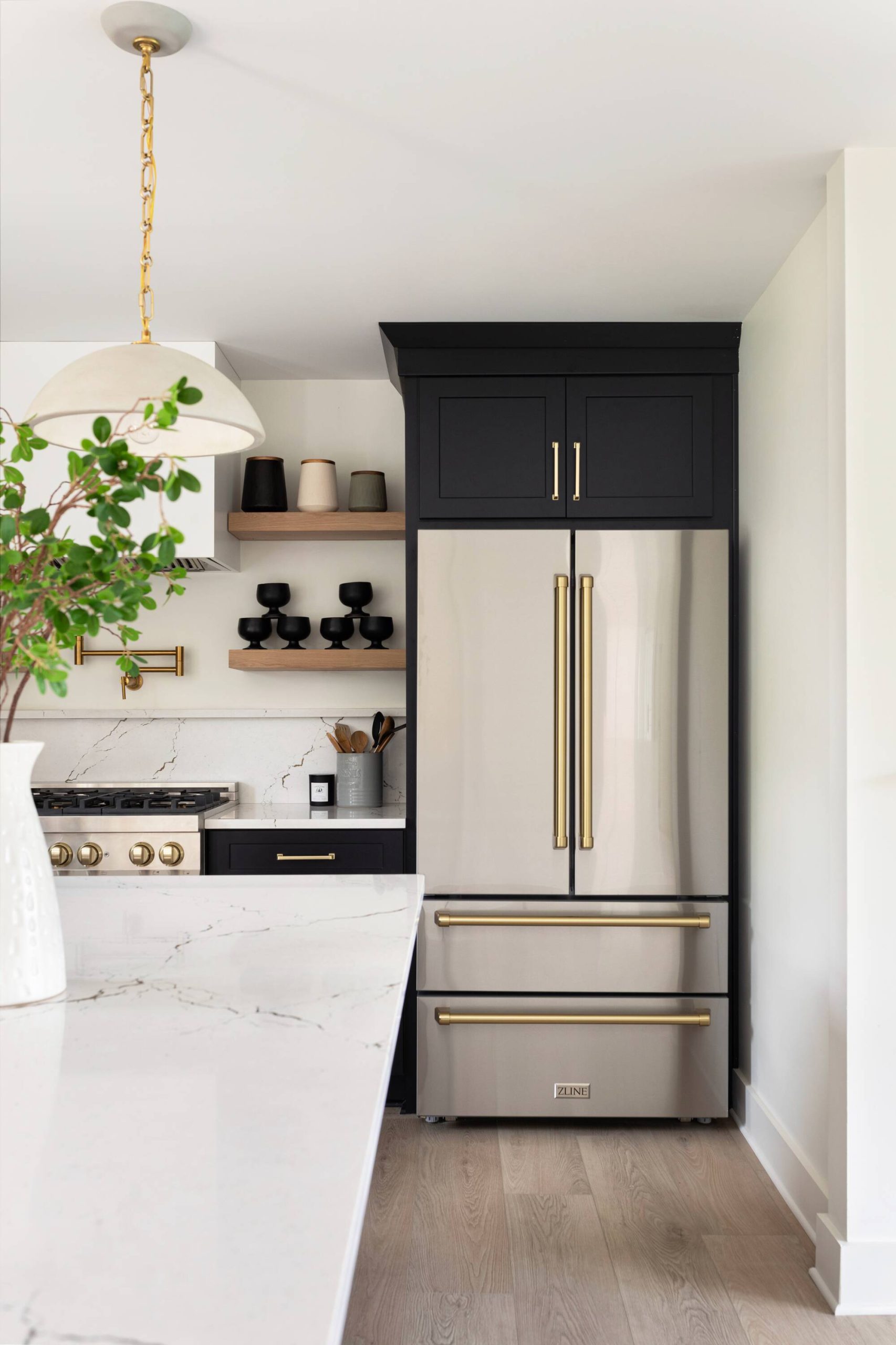 Autograph Edition Counter-Depth Design – Create a timeless look in your kitchen with a counter-depth refrigerator featuring ZLINE’s luxurious Autograph Edition Polished Gold traditional handles, a stunning fingerprint-resistant stainless steel exterior finish, and a beautiful Bright White interior that delivers superior durability