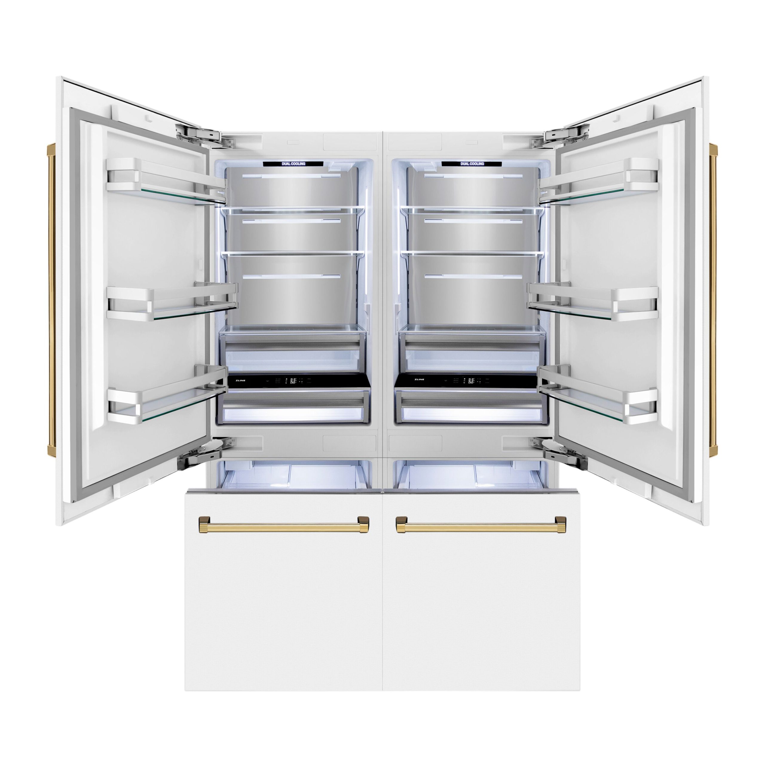 ZLINE KITCHEN & BATH Counter-Depth 32.2-cu ft 4 -Door Built-In French Door Refrigerator with Ice Maker with Water Dispenser ( Stainless Steel with White Matte Panels and Polished Gold Accent Handles ) ENERGY STAR Certified