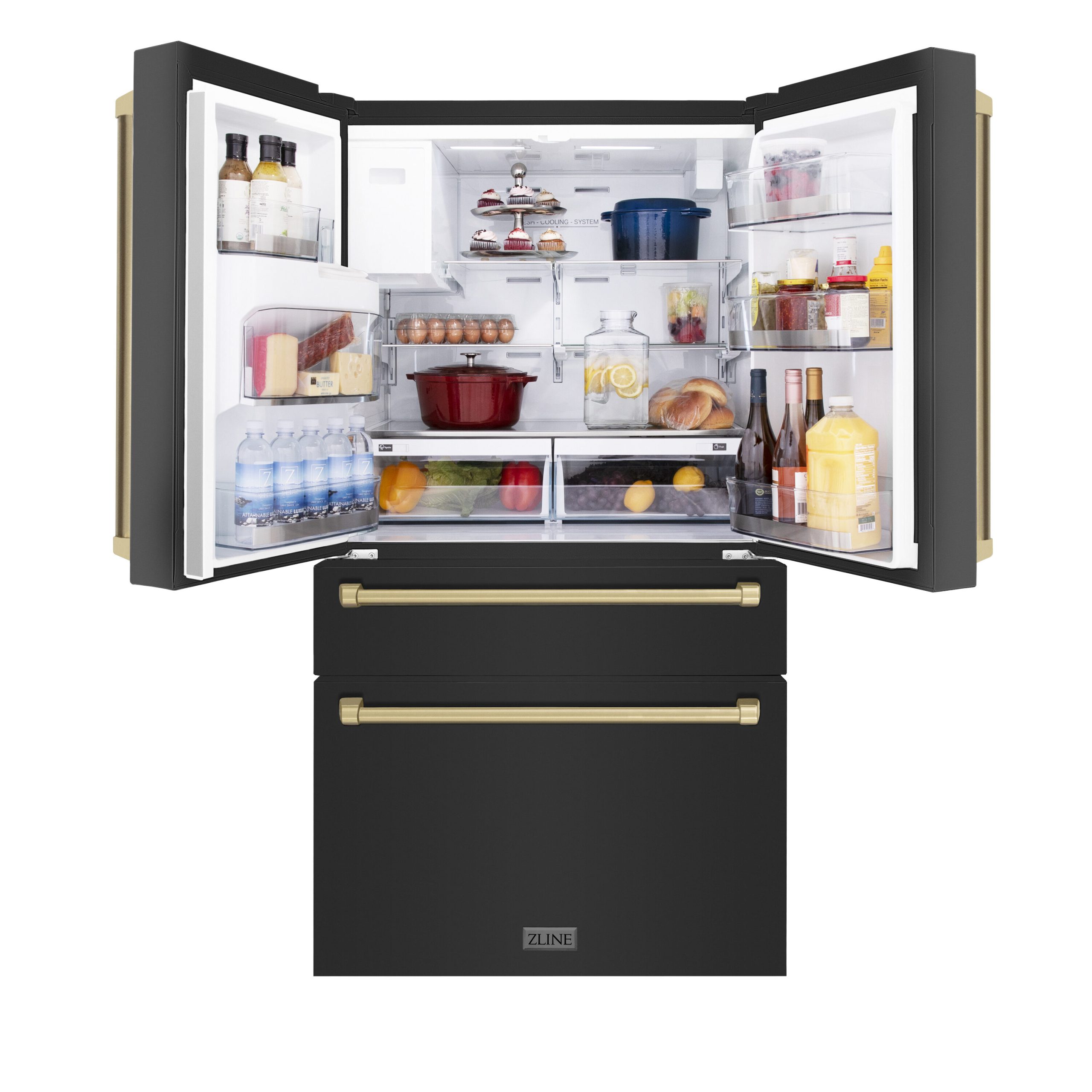 ZLINE KITCHEN & BATH Counter-Depth Autograph Edition 21.6-cu ft 4 -Door French Door Refrigerator with Ice Maker with Water Dispenser ( Fingerprint Resistant Black Stainless Steel with Champagne Bronze accent Handles ) ENERGY STAR Certified